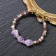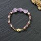天然原矿紫晶骨干、草莓晶约6mm、紫幽灵约6~7mm、切面白水晶约6mm、淡水珍珠、纯黄铜配件、钢丝软线