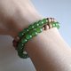 坊间不少玉器店会使用有色绳来增加珠子的颜色鲜艳度,例如绿色绳穿在绿珠中,用以误导买家,而本店坚持采用白色绳,诚实呈现玉石色彩。