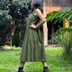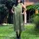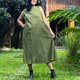 无袖宽松连身裙,采用舒适的绉纱材质,手工捏褶设计,均码,适合四季穿着。