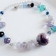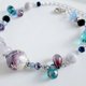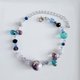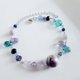 主珠是一颗可爱的蔓藤花纹珠,颜色为平静的紫色,搭配可爱丰满的泪珠珠、成熟的迷你粉红紫水晶和黄水晶,以及蓝绿、紫、金属蓝火抛光捷克珠和玻璃珠,以精致的交错方式排列,打造出独特而时尚的和风手链☺