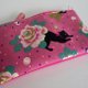 把喜欢的猫咪印花布与桃红色帆布作结合, 用简单的款式将布的图案