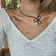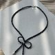 - 可爱简约的淡水黑珍珠颈链。 使用材料: - 天然黑珍珠(长度3-4毫米) - 蝴蝶结银珠 - 银色扣环和延长线 每次购买都包含一个盒子或一个袋子,因此,它可以作为礼物赠送。
