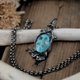 此作品简化了骨骼元素,将重心聚焦于项链中央的矿石上。让绿松石仿佛是一面映照海洋的镜子,也是一只静静凝望的眼睛,静静注视着无垠的汪洋彼方。