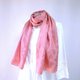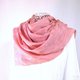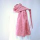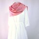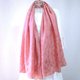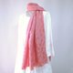 这款丝棉混纺(丝绸50%、棉50%)的围巾,采用茜草植物染料精心染色,散发着清新的气息。细致的羽毛图案遍布其中,隐约透出柔和的白色光泽。