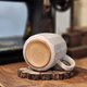 纯手工拉坯而成,表面刀削纹,台产黄陶土,乳浊白釉,出水细腻,1230度高温烧制。