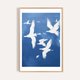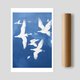 《蓝空飞行 Blue Sky Flight》由插画家 Laras 创作,以深浅蓝色的层叠与洁白剪影,描绘飞鸟群翱翔天际的诗意瞬间。极简构图强调空气感与律动感,让人仿佛置身于辽阔自然中,感受心灵被温柔托起的轻盈与希望。
