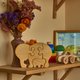 木制拼图大像玩具由枫木制成,表面涂有亚麻仁油和蜂蜡。由 4 块组成,最后一个可以让您透过操纵木块并思考在传统拼图上组装不规则的形状来发展孩子的精细运动技能。