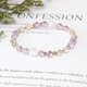 犹如一场静谧的夜晚,仿佛夜空中的皎洁月色,流转着静谧的幽蓝光芒。这款手链主石为温柔的蓝晕月光石,搭配着轻柔的薰衣草紫色的紫水晶辅以清透的黑金超七水晶更增添亮点。