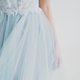 An outfit for a real nymph. “Nephelai”. The gentle pastel color of the dress is a great way to emphasize the lightness and carelessness of the look. The top is decorated with exclusive lace with tiny iridescent beads. The beauty of the dress is in the details.