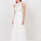 这是我们绝对最喜爱的旗袍之一。这款Cosmo新娘旗袍采用了蕾丝上衣,呈现出领口无袖的设计,下摆呈A字体裙身,能遮住任何凸起部位。搭配白色细高跟鞋,您将立即成为完美的画面。