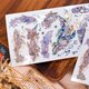 需自行裁切外型,輕柔地移除透明膜,此時轉印貼紙會連同透明膜一起被剝離起來,將其覆蓋在目標物上,用手(或是信用卡)將其推平後,慢慢地撕開透明膜即可。