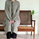 - 基本款素色长版衬衫 非常舒适的柔软材质 有点难以界定的灰杏色 开襟有加上装饰黑色小球点 袖口一点点小包袖设计