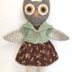 猫头鹰女孩毛绒玩具,高度 - 32 厘米(13 英寸),羊毛花和法兰绒,防过敏合成填充物。棕或粉色棉质碎花连衣裙(购买前选择一件或两件连衣裙)和绿色针织开衫。绣有眼睛和鼻子。所有衣服均可脱卸。如果您想要其他衣服 - 请联系我。