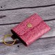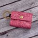 U6.JP6手工皮件-纯手工缝制粉红色压纹皮多功能万用包/零钱包/耳机收纳包 (男女适用)