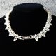 项链由多层不同大小和形状的珍珠编织而成,并饰有更多珍珠,显得华丽典雅。