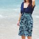 Product Name: Leaf Pattern V-neck dress <navy mint>