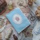 Made of felt with hand-embroidered cross stitch and crocheted lace.