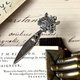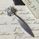 来自法国布列塔尼小城 Auray 的古董镀银书签,顶端饰以带皇冠与动物守护者的布列塔尼风格纹章,呈现出 19 世纪末至 20 世纪初书房器物的雅致气质;书签上手工刻铭花押字“Auray”,线条优雅。