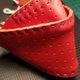 牛皮制口罩 皮面光滑 可用湿布擦拭 皮革属性柔软 内侧加缝制了长条型口袋状鼻垫片可更换 挂耳处留有四小孔 可更换挂耳处的棉橡皮筋