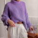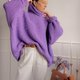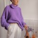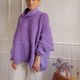 手工针织宽松高领毛衣 订制款 模特儿着用 XL 尺寸。 颜色(如图):紫色。 纱线成分:棉。 领口类型:连帽领。 袖子类型:宽袖,落肩。 版型:宽松。 洗涤说明。 请于 30 度水温手洗。 请平铺横向晾干。