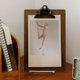 标准办公室剪贴板。这是一种老式的标准形状,看起来就像在美国电影中出现的那样。坚固的金属夹很坚固,一旦抓住文件就不会松开。这对于在桌子和纸条上做笔记来说是一个巨大的成功。作为夹住婚礼留言簿(留言簿/A5)的活页夹也很受欢迎。