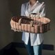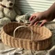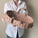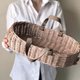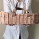**Wicker baby doll Moses basket with moveable leather handles.** Perfect for doll babies and stuffed toys. It will also be a great prop for photo shoots for craftsmen engaged in making dolls and soft toys.