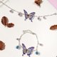 < 手绘紫色纹理蓝橙色波浪纹燕尾蝶玻璃小球手链 手錬 >