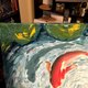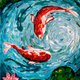 Koi Fish Painting Original Art Fish Artwork Animal Wall Art Koi Oil Painting - 海报/装饰画/版画 - 其他材质 蓝色