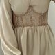 一件窄而闪亮的紧身胸衣,没有杯子,后面有缎带。 它将创造一个明亮的口音和补充你的形象.