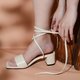 2-inch high heels with ankle laces that use Micro-fiber material imported from Japan, strong, durable, but soft, comfortable to wear, comparable to genuine leather shoes.