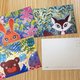 手绘酷表情动物们在叶影海洋间,搭配炫亮星幻卡印制, 最适合问候远方的人,你好吗~ 自己收藏也值得~ 庆祝新开馆,包邮!(限台湾地区)