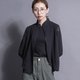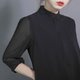 - 立领设计、棉质混纺、雪纺拼接、公主袖设计、具备口袋。
