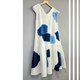 蓝染反帽子绞是在织品上保留大面的白底,让设计的图案染出颜色。其中需要使用扎与缝的技法。由于画面蓝白强烈对比,画面色彩饱和,让白衣作品格外有精神。