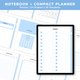 **“Notebook + Compact planner”** is similar to **“Notebook”**, the difference is that it has yearly, monthly, weekly planners with hyperlinks and 3 project planner templates, i.e. task, monthly, and daily.
