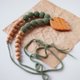 The beads of the nursing necklace are assembled onto a durable and reliable crochet cord. A double strand is used for crocheting the cord.