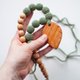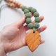 Nursing necklace consists of unfinished (no varnish or coat is used) wooden beads, that are manually crochet over with cotton yarn. You will be enchanted by the smell of juniper wood!