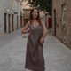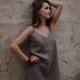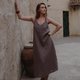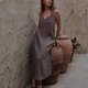 夏季女款宽松亚麻吊带裙,前后皆为 V 领设计,搭配细肩带。夏季的理想选择。细肩带设计,极简风格,提供五 (5) 种时尚色调。长度及膝以下,中长裙。