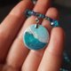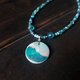 - Wave necklace, sea wave miniature painting on pearl pendant. Sea yin yang necklace with glass beads. Mother of pearl pendant on turquoise choker. Like surfer jewelry. Wearable art. Interesting gift idea for a romantic person.