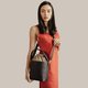The bucket bag has plenty of room inside to carry lots of stuff but doesn’t feel too big for everyday. Crafted from saffiano leather, it has protective gold studs at the base. You can fasten a drawstring top to keep your phone, cards and wallet secure. The interior can be hidden, if you do not want to show it. Strap is cut wide for extra comfort. The bag also comes with an hidden external pocket!
