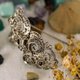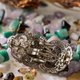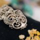 缠绕细致的掐丝工艺,繁复细腻,韵味典雅。中心的雏菊花朵造型更衬托出温暖美丽。三颗镶崁点缀的石榴石,让整体细节更加亮丽耀眼。