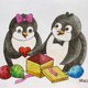 企鹅情人节原创水粉插画 《企鹅情人节》14x18 厘米,2021 年 纸、水彩笔、中性笔 (需要一个框架挂在墙上) 艺术家 - 阿纳斯塔西娅·库尔干诺娃 环保运输包装(回收材料)