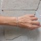 将蓝色与透明的天然石点缀于卡伦银的圆形缀饰上,精心打造出这款手链。