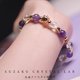 白水晶,晶莹剔透,如同夜空中最亮的星星,带来纯洁与光明。紫水晶,深邃迷人,犹如宇宙的神秘角落,散发着智慧与灵性的光芒。手串中间那颗金属太阳装饰,象征着光明与希望,照耀着整个宇宙。