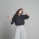 下身搭配:手工棉麻宽摆裤裙 - 浅灰