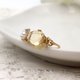 - 一枚像一滴充满光芒的蜂蜜一样闪闪发光的戒指。淡水珍珠和黄蛋白石的装饰增添了优雅和可爱。