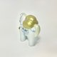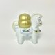 高度约9厘米,宽度约9厘米。 以白瓷土灌注烧制,制作出白瓷生肖马摆饰, 之后,再以金色米俵、马鬃、堇色马鞍等进行绘付。 想像一匹美丽的金鬃神马,作为神明的使者,运送着象征富贵与幸福的金色米俵。