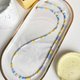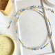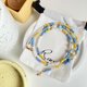 This is our new combination colors yellow and blue. Threaded by hand with a copper sling. The main material is yellow, blue, pearl-coated blue beads decorated with white freshwater pearl, cute and bright. Easy to match with any style.