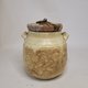 茶叶罐拉坏成形 盖是软木塞布盖 布里面加一层锡箔 以隔绝软木塞原味干扰茶香 罐内上釉 1230度以上高温烧制 可调节湿度 可妥善收藏茶叶 罐身有隐约压印花纹 形塑出釉的层次