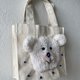 I sewed a fluffy polar bear work on a small bag in unbleached color.