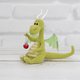 我使用:“Slonim” 2 根线的底纱(棉+压克力,100g ~ 808m,4 英寸近 42-45sc)。也适用的纱线 Gamma «Iris»(棉,10g ~ 82m)或 YarnArt Iris(棉,20g ~ 138m)或 3-4 根线的牙线。颜色:绿色、浅黄色。你还需要白色的牙线来制作角,黑色的牙线来绣眉毛。